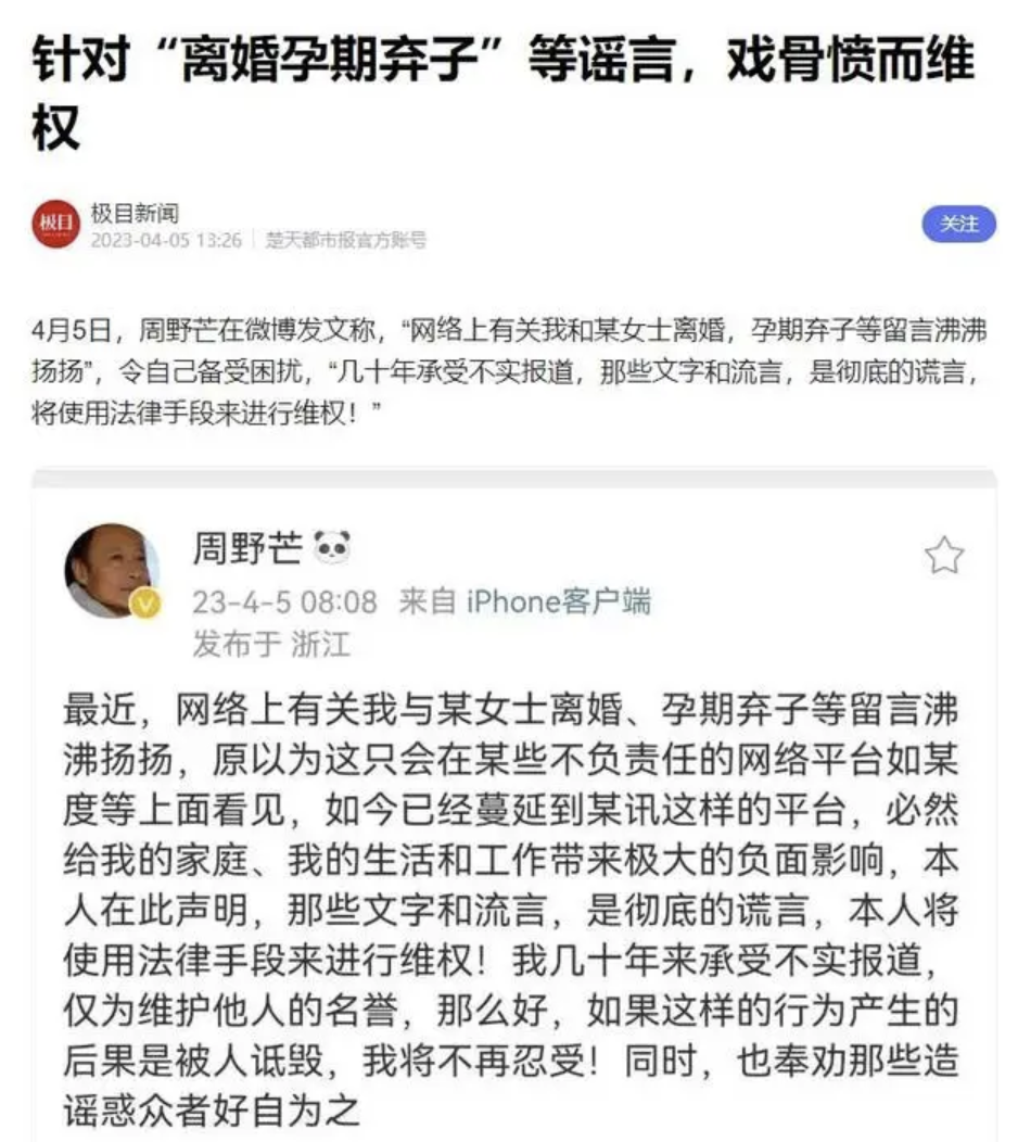 被骂了30多年的周野芒终于在2023年忍无可忍,将奚美娟的粉丝告上法庭。