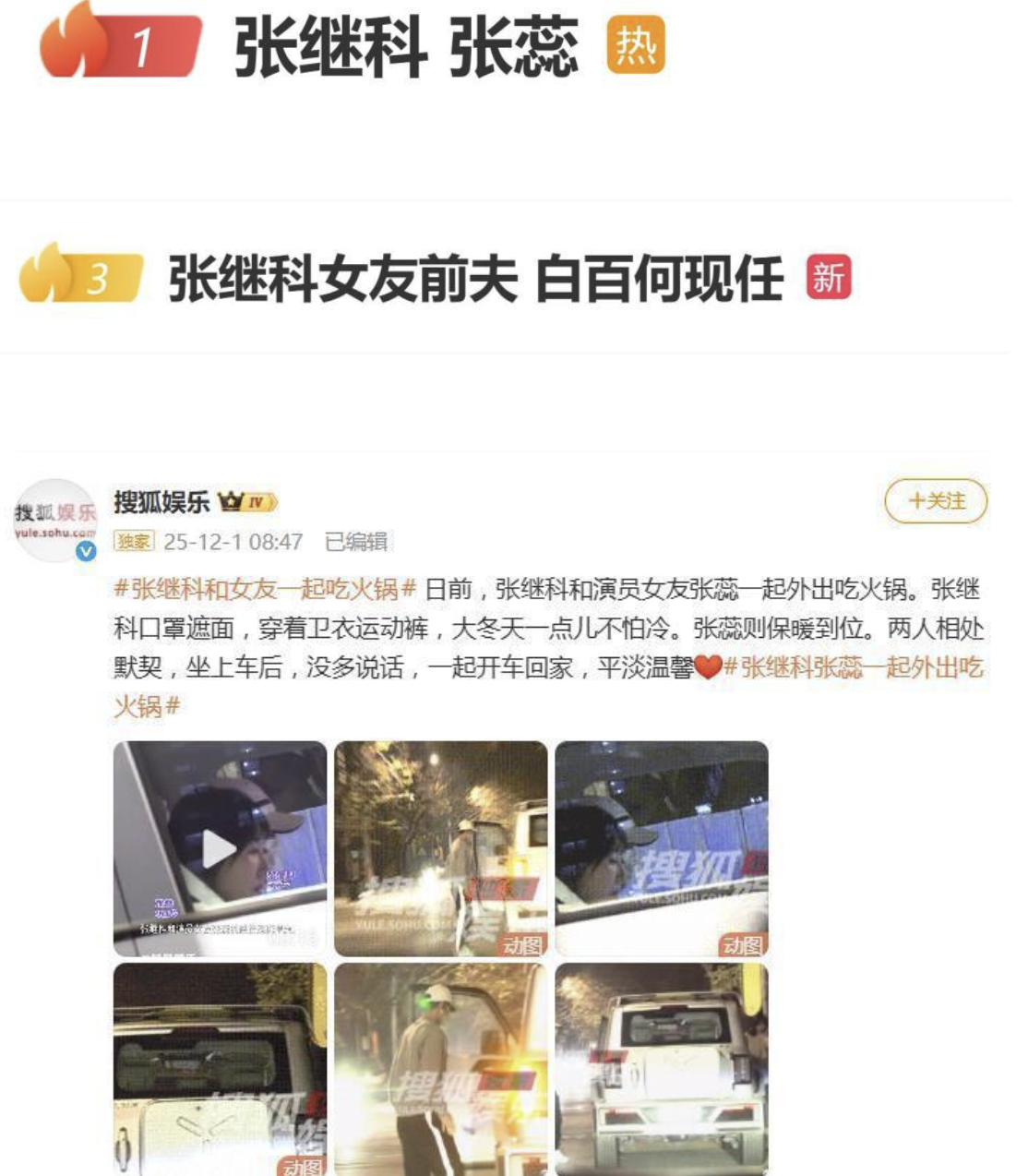 据说张继科外出当天一身休闲抗冻装扮,而女友张蕊则包裹严实,两人吃完火锅后相偕回家,虽然过程中没有对话趋势,但默契的程度却让狗仔大呼平淡温馨。